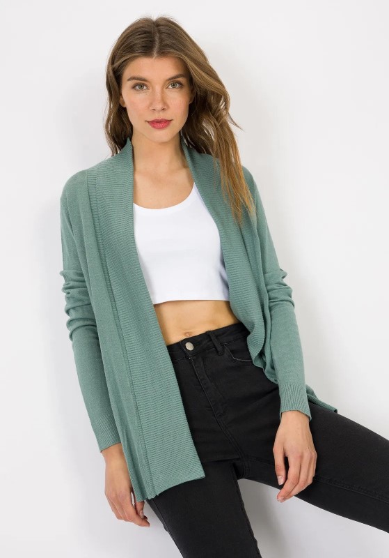 Λεπτή πλεκτή ζακέτα με μακριά μανίκια.