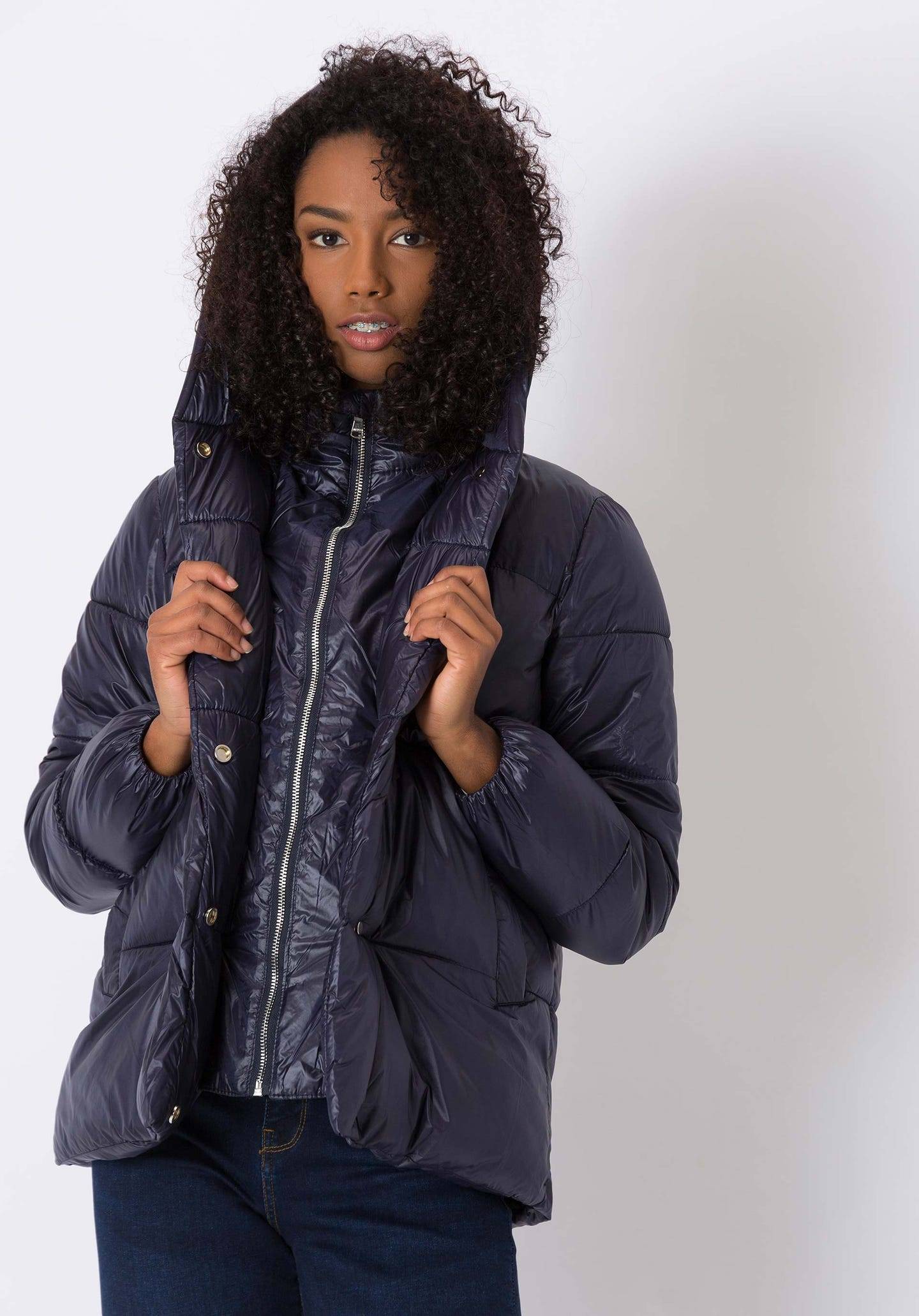 Μπουφάν με επένδυση με κουκούλα και μακρύ μανίκι. Μπροστινές τσέπες. Μπροστινό φερμουάρ και ελατήρια. Εσωτερική λεπτομέρεια λειτουργικής ταινίας.