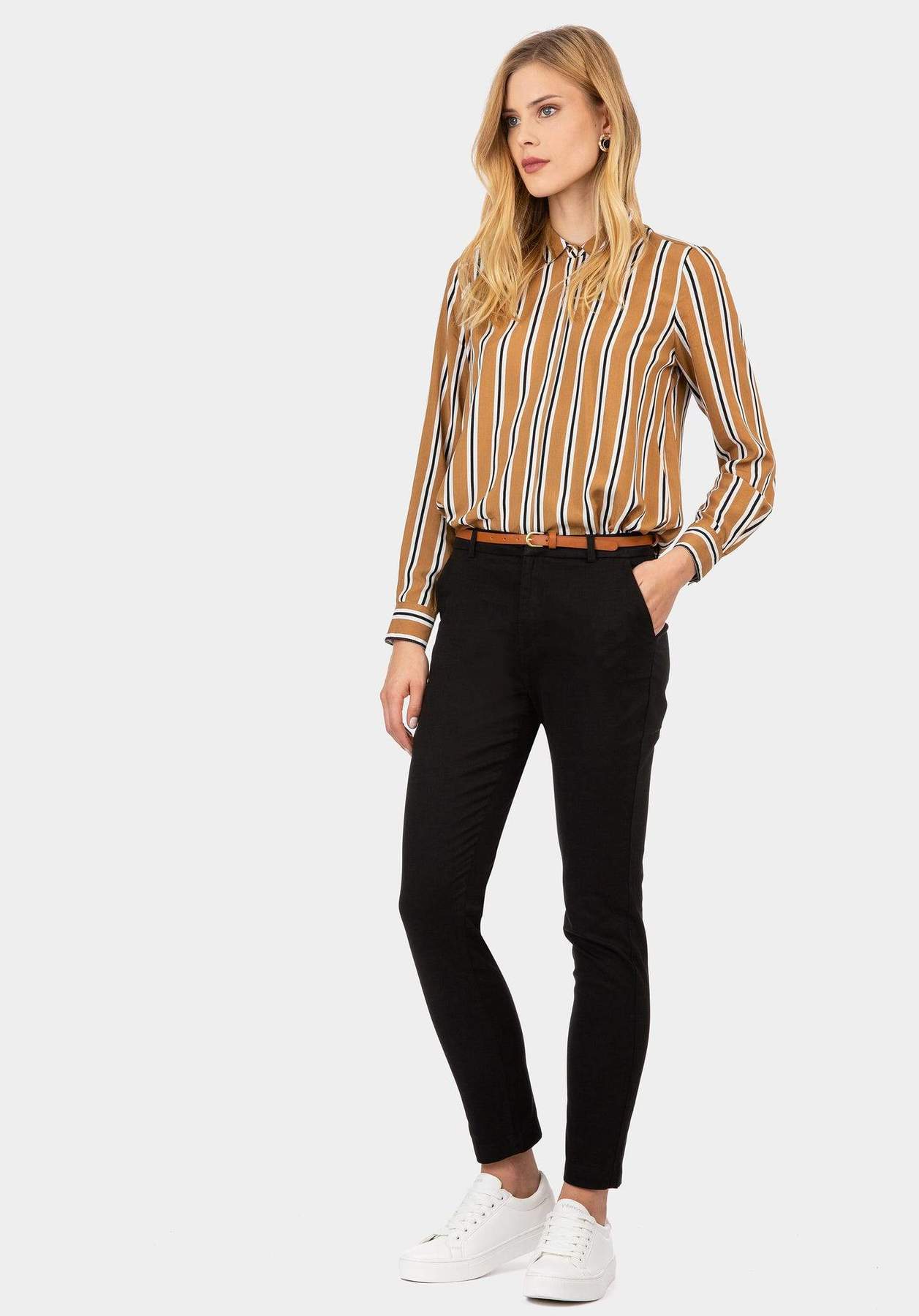 Παντελόνι slim fit, με τσεπη στο πλάι, με καμε χρωματος ζωνη, ελαστικο