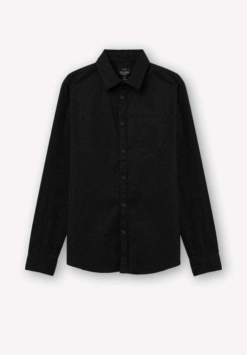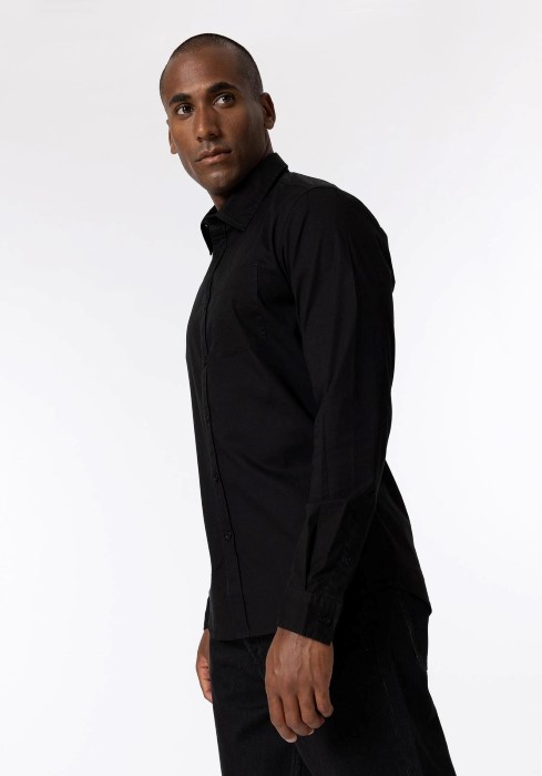 Shirt with flap collar with buttons and long sleeves. Front closure with buttons. Front pocket. Stretch fabric.