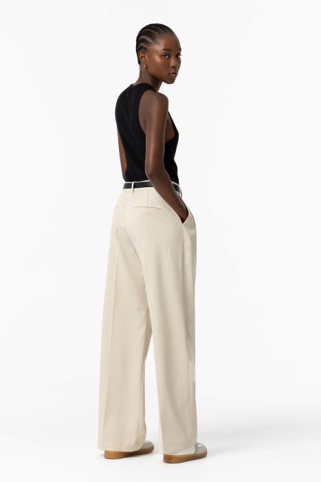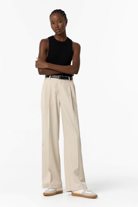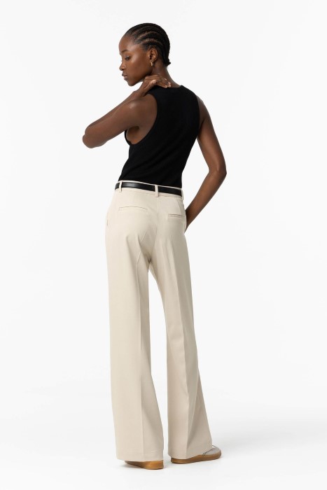 High-waisted wide-leg trousers. Contrasting belt detail. Pleated detail.