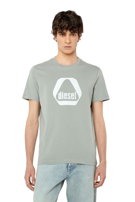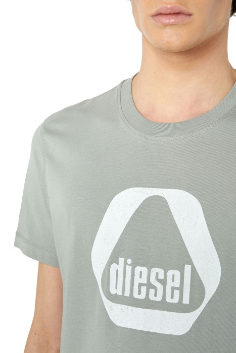 Men’s fitted T-shirt in cotton jersey, emblazoned with a retro-style utilitarian logo graphic on the front.