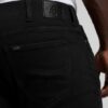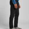 Soft to the touch, these pants move with you and relax as well as technical pants, giving you the same comfort as your ideal telecommuting pants. And they’re made from recycled fabrics for a reduced impact on the environment.This denim has our signature look. Here, it’s a dark raw denim with contrasting thread for a sophisticated, polished look.The sporty, comfortable waistband is accented with grey elastic, and iconic details make their way into the silhouette, with a button ring and brown leather back yoke