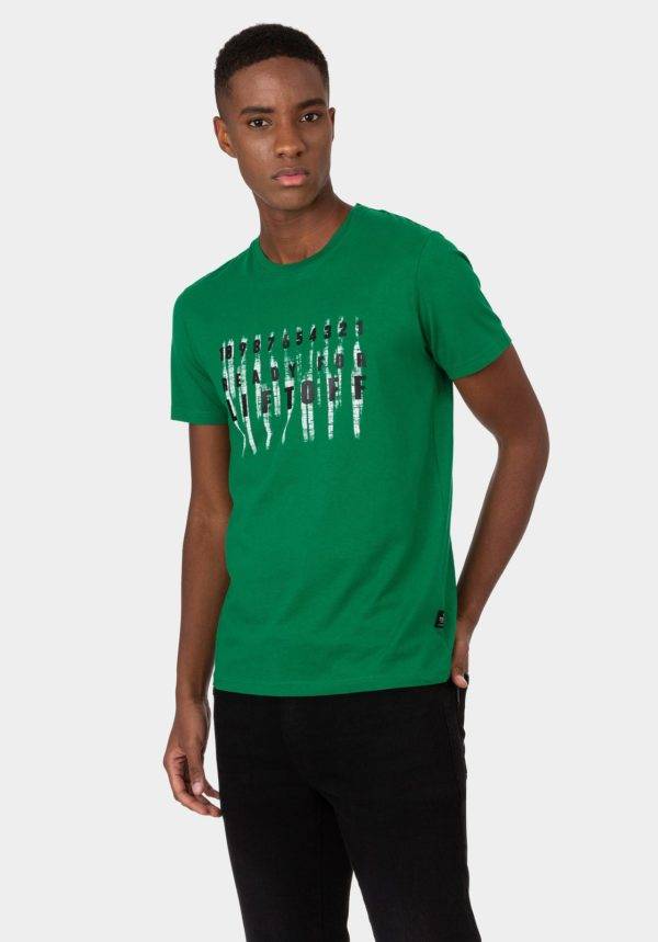 Μπλούζα Κοντό Μανίκι με στάμπα στο στηθος, Στενή Γραμμή 100%Βαμβάκι