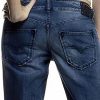 100% cotton Machine wash Pure Color Blue right hand construction Original denim with normal finish calabroni stonewash spray Cat and using sandpaper slim-skinny.